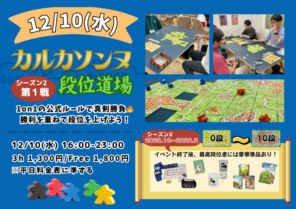 ・軽ゲー卓/中,重ゲー卓の2つご用意。参加したい方を選べます。