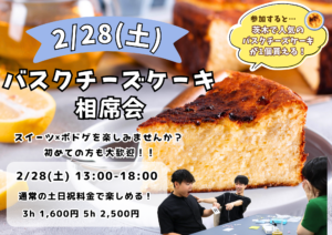 2/28(土) バスクチーズケーキ相席会🧀 日時・料金🎫📅2/28(土)13:00-18:00💰土日祝料金に準ずる(※3h以上必須)🍮人気のバスクチーズケーキが貰える! イベント概要🎊・皆でワイワイ楽しめる相席会です!🎲 […]